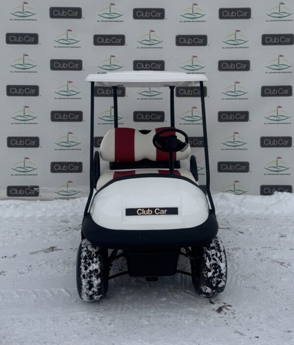 This cart is in the color White with used Custom White/Red Seats!