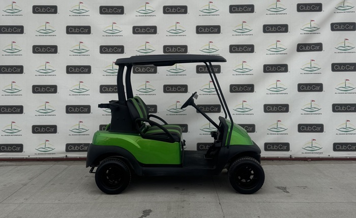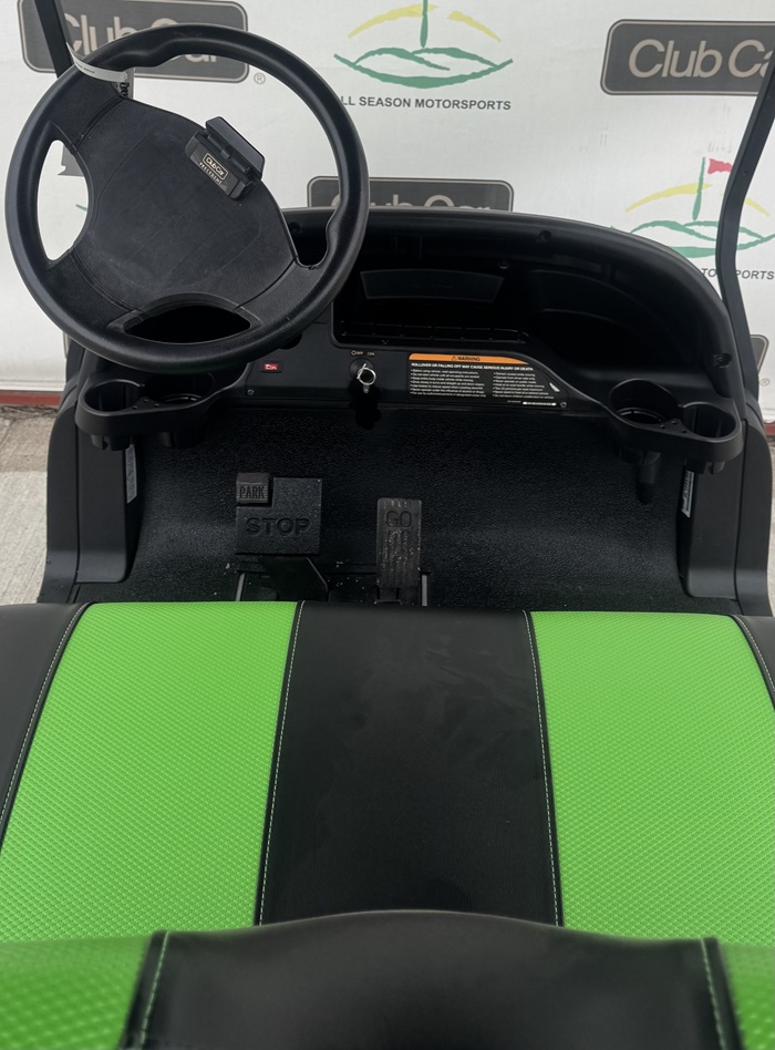 This cart is in the color Synergy Green with used Custom Black/Green Seats with a 10″ Custom Wheels!