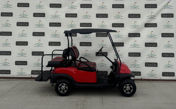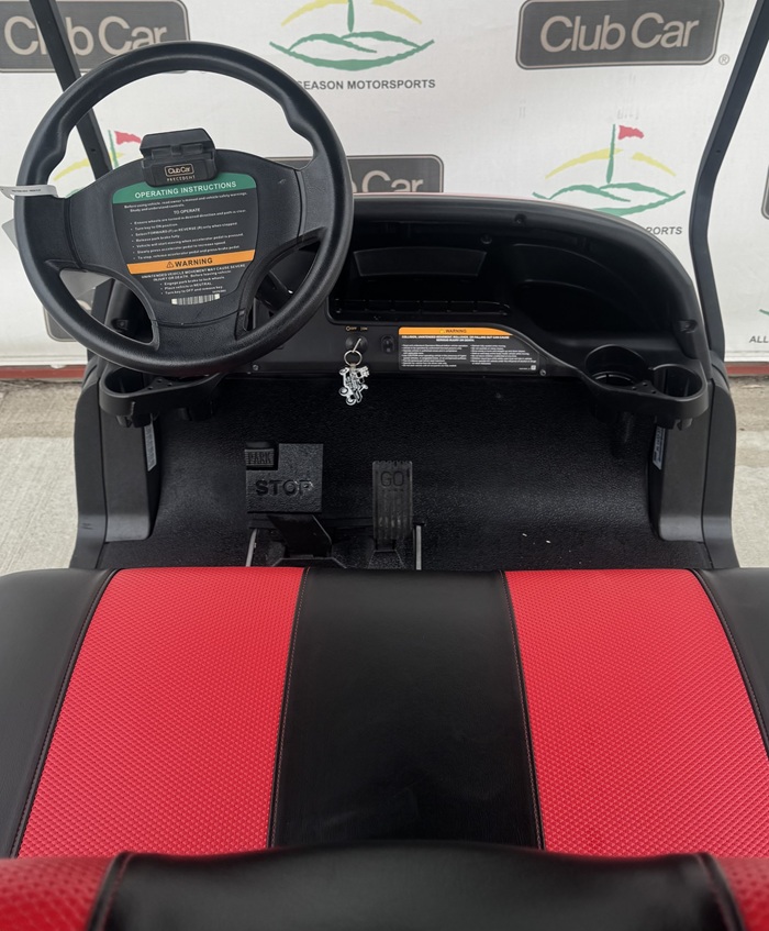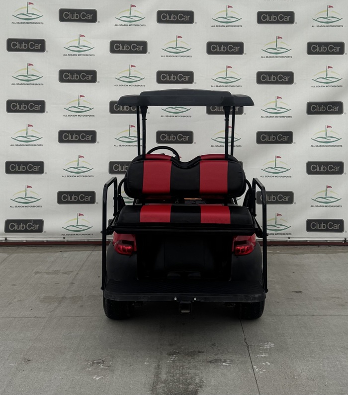 This cart is in the color Red with used Custom Black/Red Seats with Hub Caps and Light Kit!