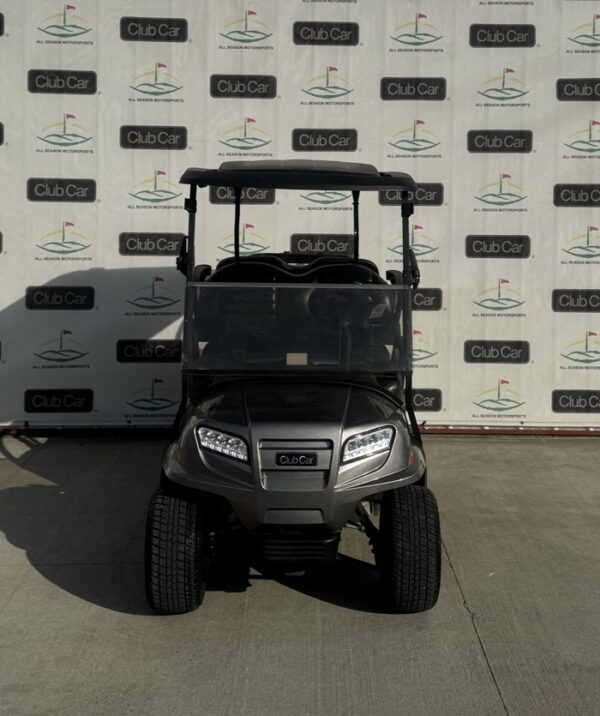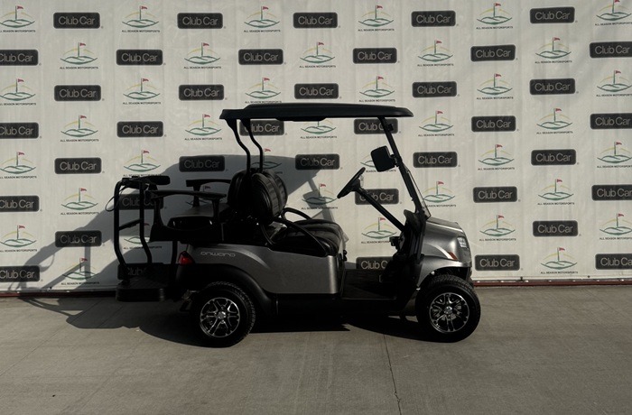 This cart is in the color Metallic Platinum with Premium Black/Grey Seats and 10 Inch Mercury Rims!