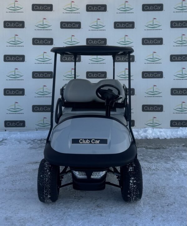 This cart is in the color Platinum Grey with Standard Grey Seats and 10″ Aftermarket Wheels and a Light Kit!