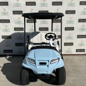 This cart is in beautiful Metallic Tuxedo Black, shown with Club Car’s grey premium seats, and 12 Inch Athena Chrome Rims! This cart also features headlights, taillights, blinker, horn, fuel gauge, hour meter and USB port.