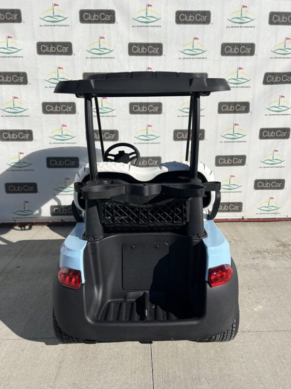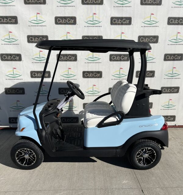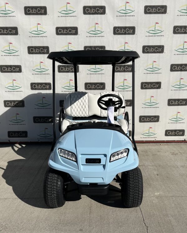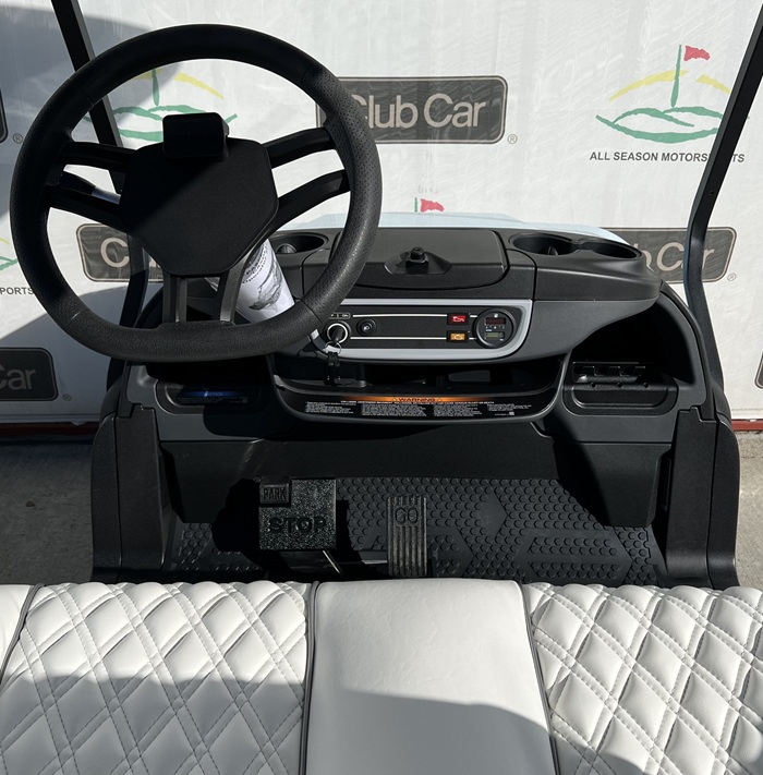 This cart comes in beautiful Heritage Blue, shown with Club Car’s Elite Bright White Premium Seats, and 10 Inch Mercury Rims! This cart also features headlights, taillights, blinker, horn, fuel gauge, hour meter, USB ports, wireless charging pad, lockable storage.