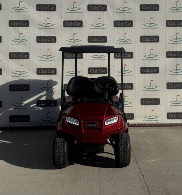 This cart comes in beautiful Metallic Candy Apple Red, shown with Club Car’s Black Standard Seats, and 10 Inch Mercury Rims! This cart also features headlights, taillights, blinker, horn, fuel gauge, hour meter, USB ports, wireless charging pad, lockable storage.