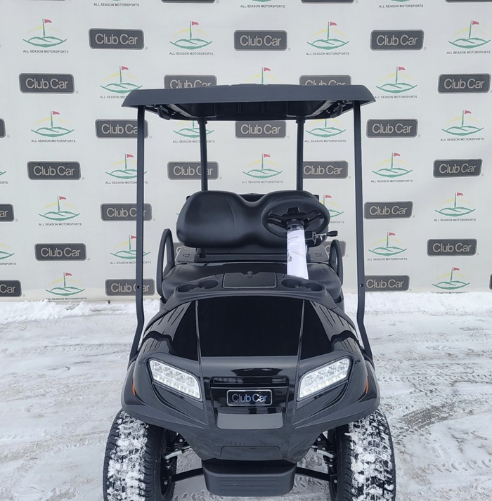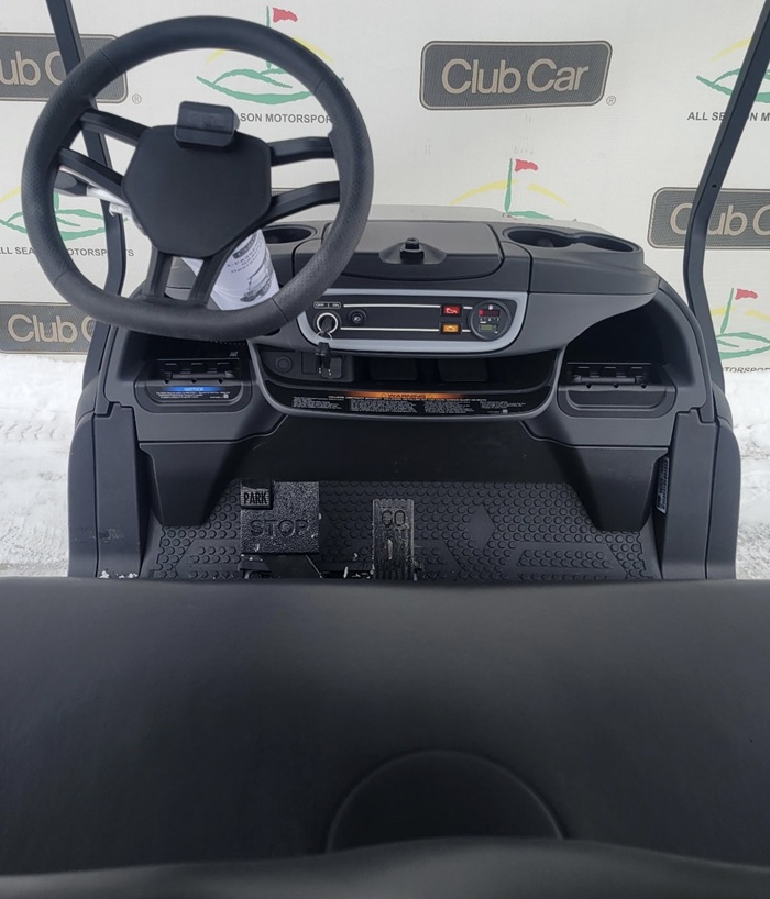 This cart comes in beautiful Metallic Tuxedo Black, shown with Club Car’s Black Standard Seats, and 10 Inch Mercury Rims! This cart also features headlights, taillights, blinker, horn, fuel gauge, hour meter, USB ports, wireless charging pad, lockable storage.
