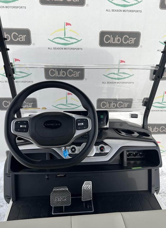This cart is in the color Matte Grey with Premium Serene Beige Seats and 14 Inch Explorer Wheels! This cart comes street legal! It includes headlights, taillights, blinker, horn, windshield, battery gauge, odometer, USB port, mirrors, cup holders, under seat storage, side steps, LED Canopy Lights, and sound system with Bluetooth and Radio! Also includes Apple Carplay and Android Auto.