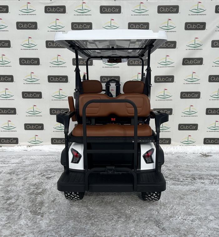 This cart is in the color Metallic White/Red with Brown Seats and 14 Inch Explorer Wheels! This cart comes street legal! It includes headlights, taillights, blinker, horn, windshield, battery gauge, odometer, USB port, mirrors, cup holders, under seat storage, side steps, sound system with Bluetooth and Radio! Also includes Apple Carplay and Android Auto.